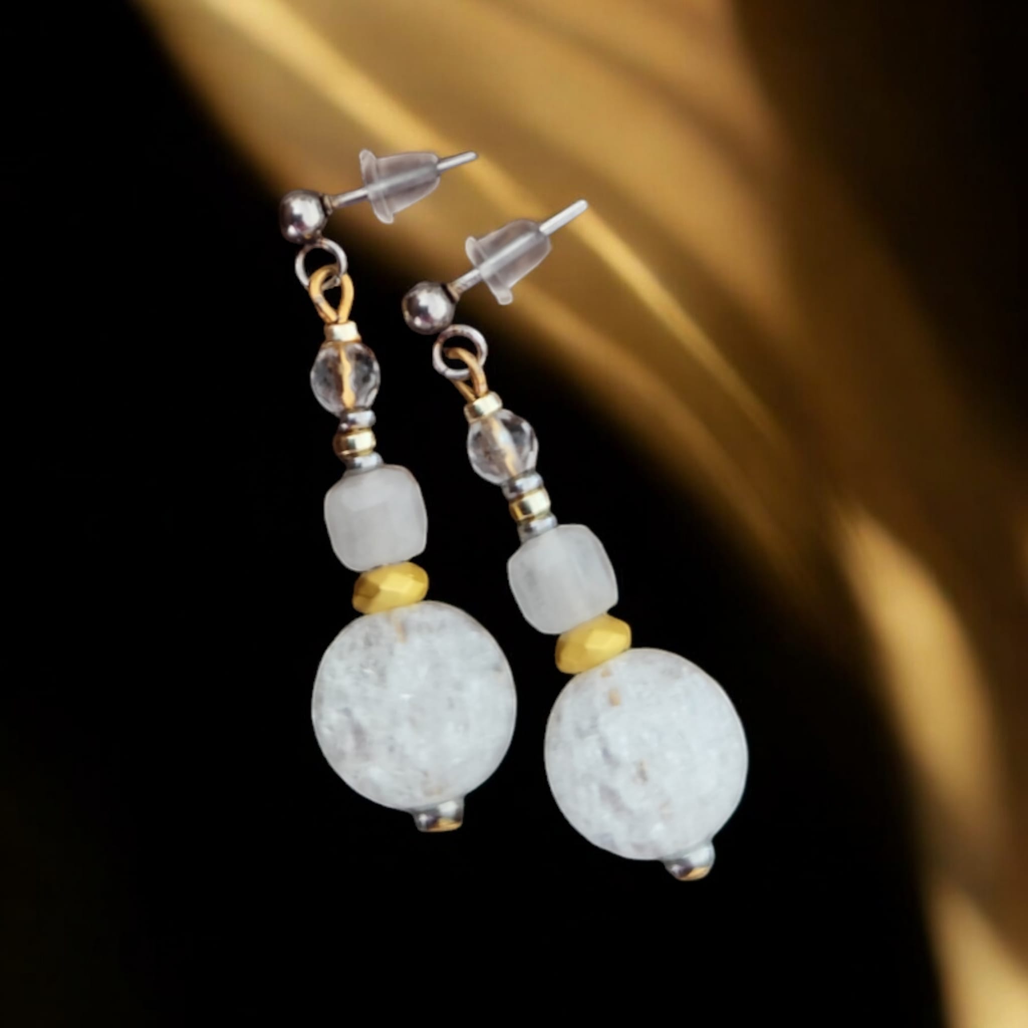 Kolczyki z kryształem górskim, hematytem oraz stalą szlachetną. Do kompletu polecam bransoletkę.